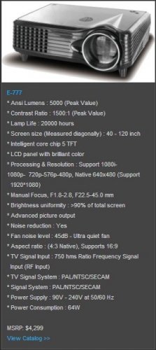 On a positive side. The equipment works, some seems a bit dodge, but it does work. Definitely not the quality they portrayed. Apparently this inferior gear is being brought into the country from China or somewhere. The boxes say America. Brand, EClipse and Commercial Media Diamond Series. Maybe someone in America can confirm this is a real American product. Its an E777 projector. Comment.....