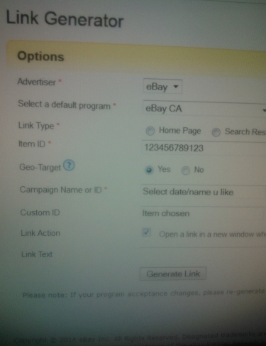 Before adding links, you need to go to Ebay.ca (or whatever your home country), to select the item you wish to add to your site. Once you select your item, you will be going back to your Ebay Partner Network to generate your link. Follow these steps: