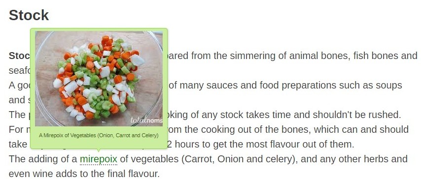 Yes as I said earlier Wikipedia gave me the source code, but site support was not too happy about implementing on my site without knowing the consequences, which is why I searched for this plugin. I have a recipe site so I use it on certain words that need explaining, as you can see in the blog above, I explained in the popup what a mirepoix is, the beauty of it is that you can included an image.