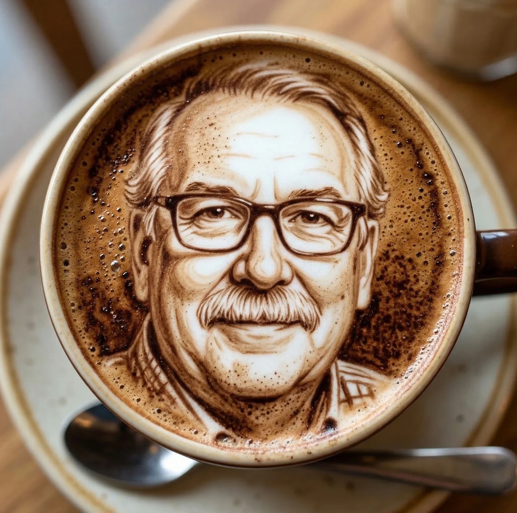 I changed the prompt a little as I uploaded my selfie as a reference image: "Attached is selfie image. Turn the image into delicate latte art made of microfoam on top of a cappuccino. The final result should have rich espresso tones and soft white foam, complete with tiny bubbles and a dusting of cocoa. And this is the result: