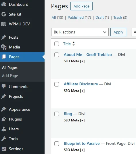 Ignore the Divi as that is the theme I am using. The page Blueprint to Passive is my static home page.