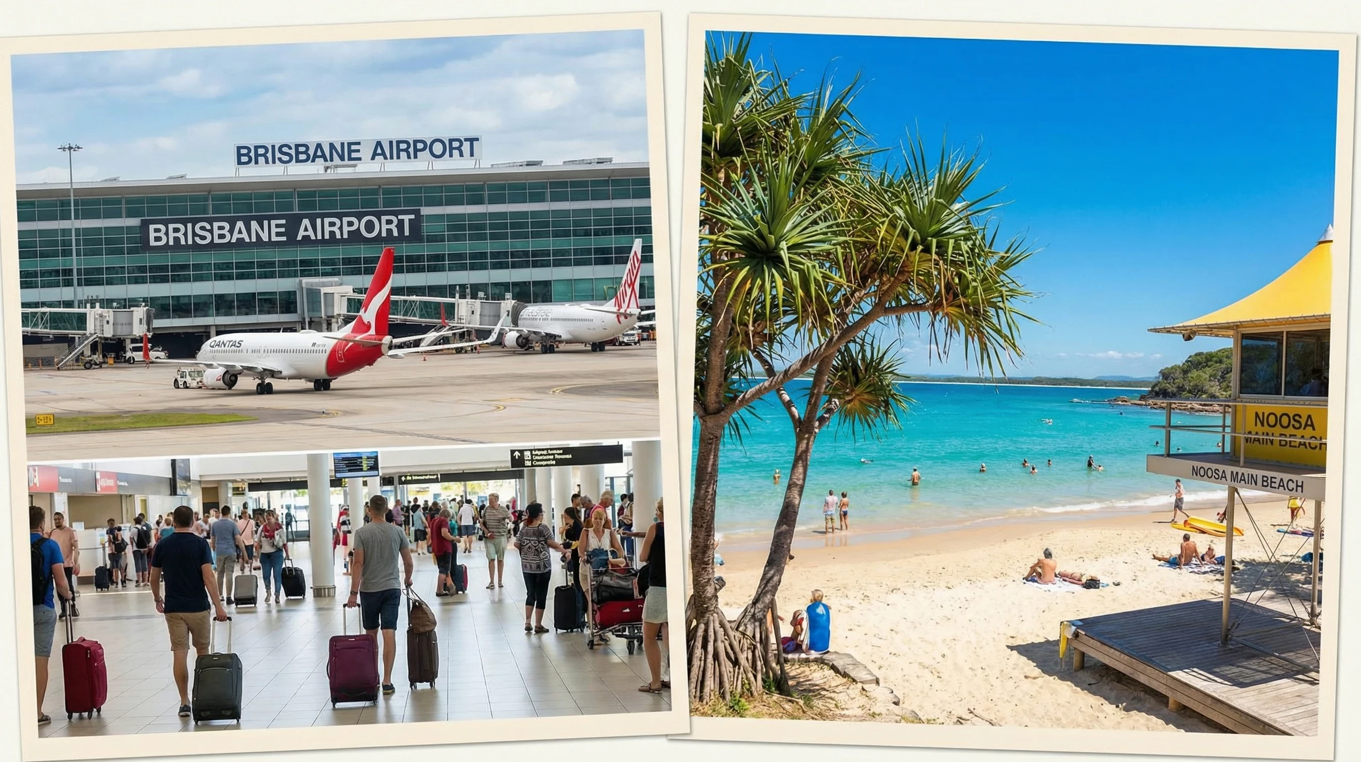There were no reference images this time and my prompt was "A 1 row by 2 column collage with an image of Brisbane Airport on the left column and an Image of a Noosa beach on the right column".
