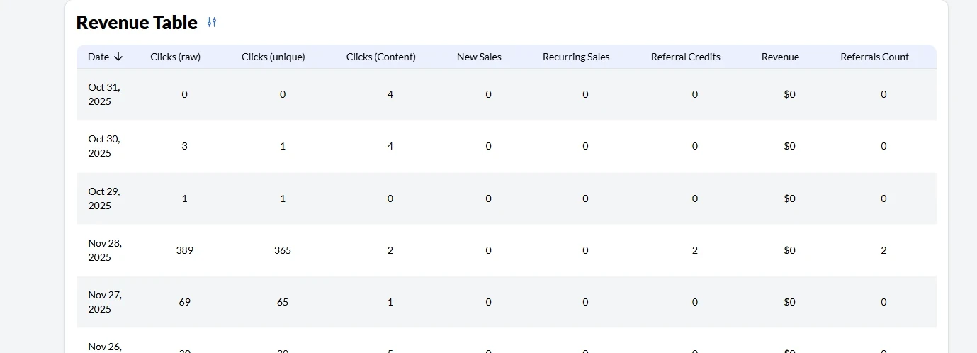 There are a couple of anomalies in the figure such as 707 link clicks reported in FB yet a total of only 430 Unique clicks report in WA. Also WA reports 2 Referral Credits and Referral Count yet there is only one reported in My Referrals.