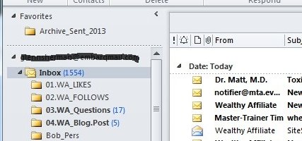 I use RULES in my Outlook to automatically shift incoming emails into manageable buckets of similar messages. So far I have set up the following storage directories (buckets) under the main Inbox of my main email address: