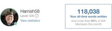 - 118,000 words - lagging by just under 2,000 words but I will catch those up this weekend