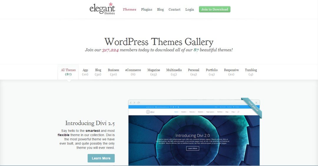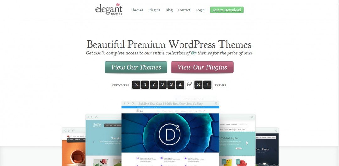 In www.elegantthemes.com there are 3 main products which are Themes in zip file, plugins, and themes in psd file.