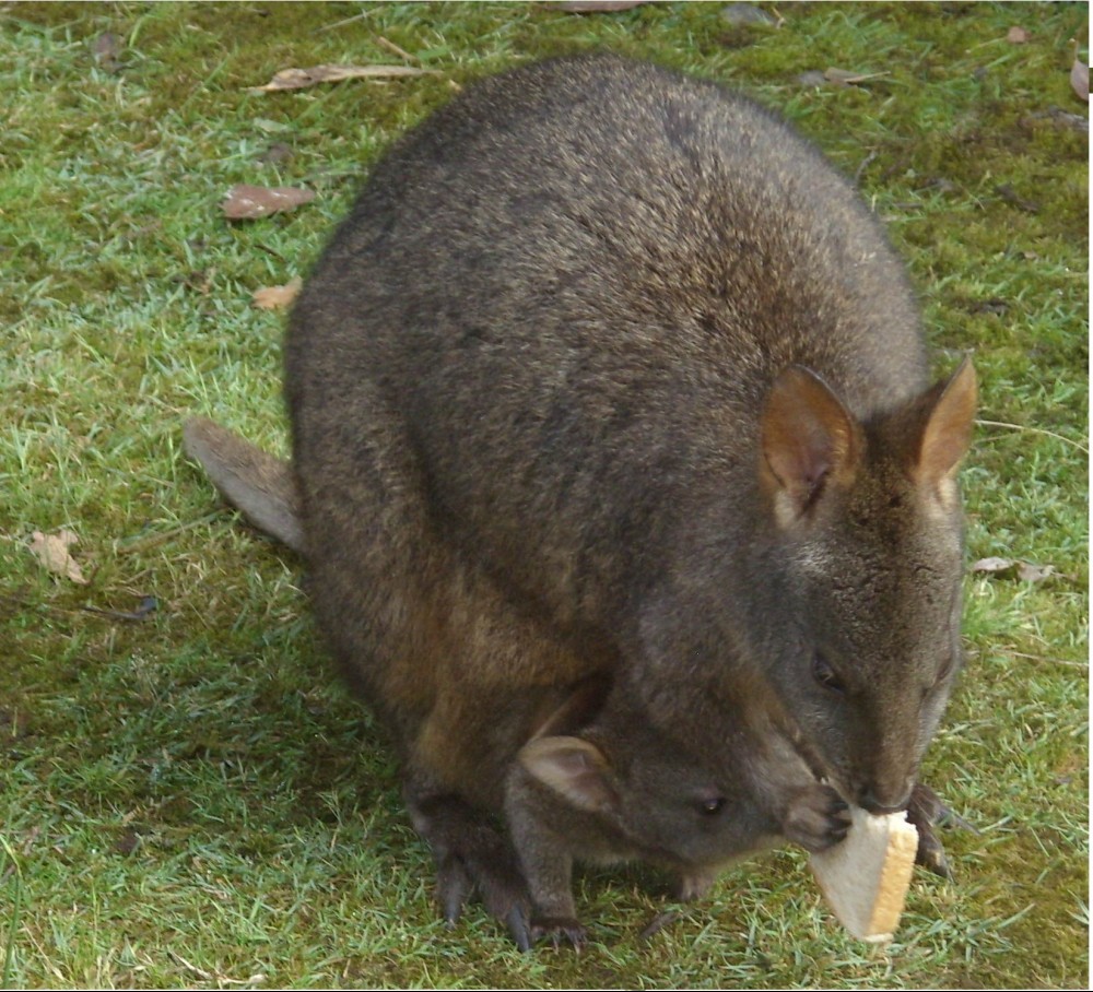 Here is one of our little visitors. We had about 6 wallaby mums visiting this year. This little one is one of the few still in the pouch.
