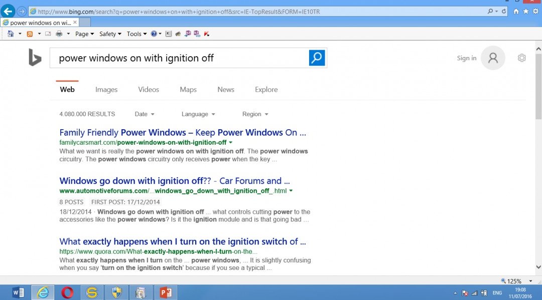 I uploaded an article on power windows and a video of it. After a few hours I searched "power windows on with ignition off" in Bing, on my wife's computer. And it showed up at the top.