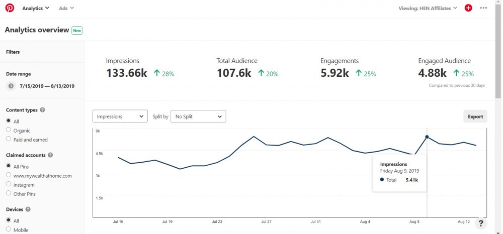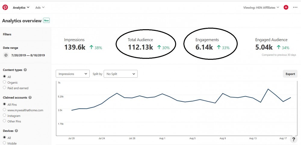 Another main reason I love Pinterest is because you can track your audience insights using their analytics. However, you need a Business Account to use it. Check out these stats: