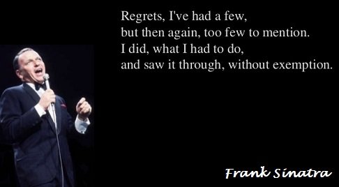 I can't help thinking of Frank Sinatra when he starts singing, "Regrets, I've had a few.." in his song, "My Way." If you sing the song in your mind (or out loud), you see that he turns out being content with the life he led.