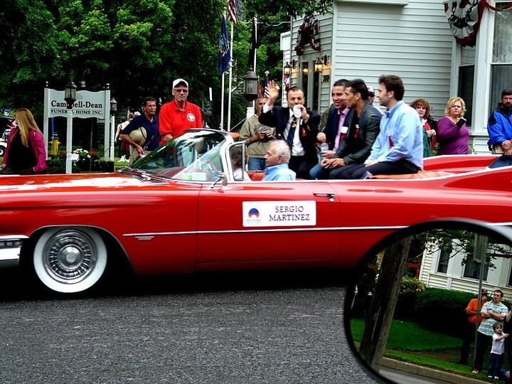 Every year, I drove my PT Cruiser convertible in the Parade. There were about 25 convertibles that escorted the boxers being inducted. They sat with their wife or another boxer on top of the back seat, waving to the crowd. I drove Wilfried Sauerland and his wife the year Sly Stallone was there, following the car with Mike Tyson. (and drove Ernie Shavers another time--I drove in 3 parades!)