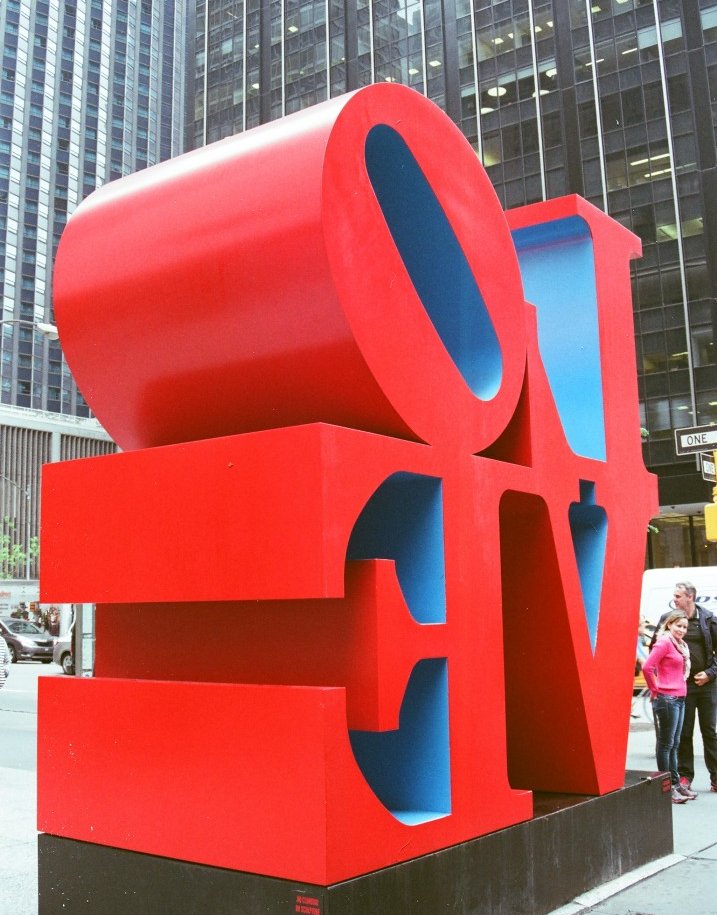 For instance: Try Isamu Noguchi's Cube, in front of the Marine Midland Building at 140 Broadway in the financial district,or the famous LOVE sculpture by Robert Indiana, on the corner of 6th Avenue and 55th Street in Manhattan shown above.
