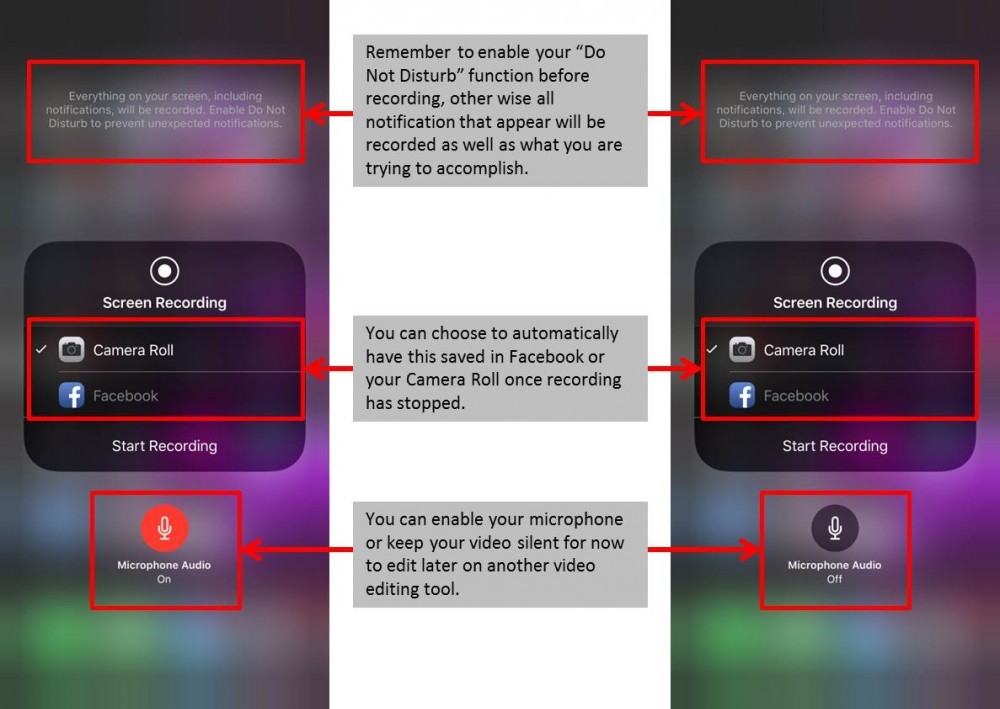 The top is a warning to make sure that your "Do Not Disturb" function is turned ON before recording, otherwise your notifications will record along with your planned video.