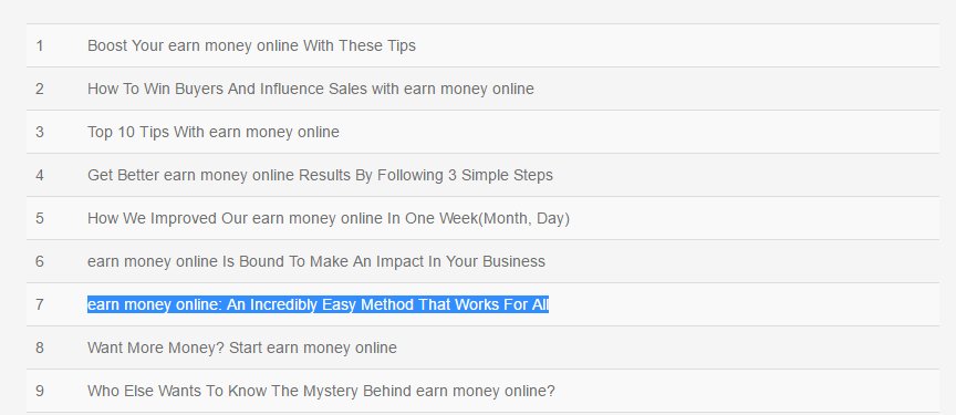 For this example I used the title generator, (from the previous post) to get ideas, my keyword (the one I want to rank for) is "earn money online" so on the first 10 sentences i found one that I liked and moved from there to headline analyzer.