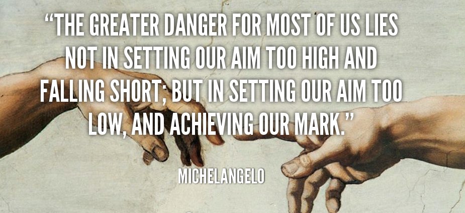 Michelangelo the great painter said: "The greater danger for most of us lies not in setting our aim too high and falling short; but in setting our aim too low, and achieving our mark", and I think he is completely right.