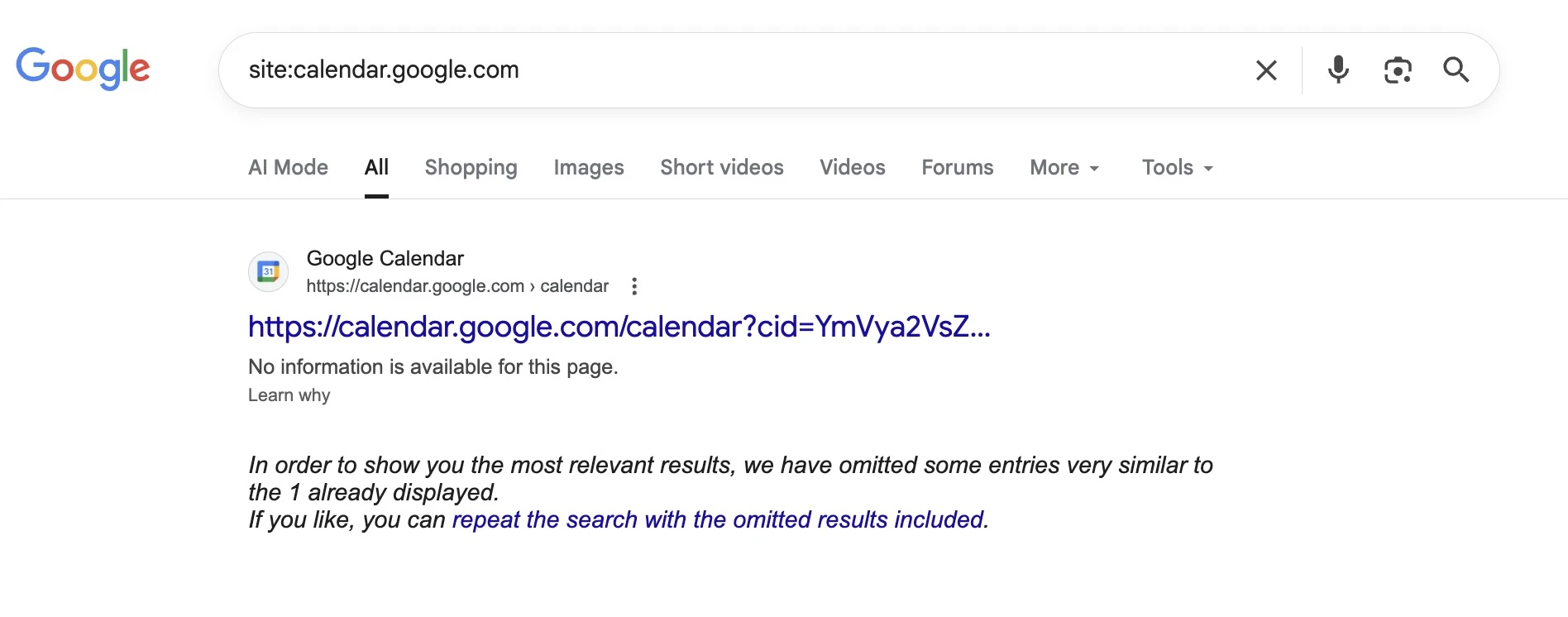 When you make a calendar public, Google assigns a unique URL to it — and that URL can be crawled and indexed like any other webpage.