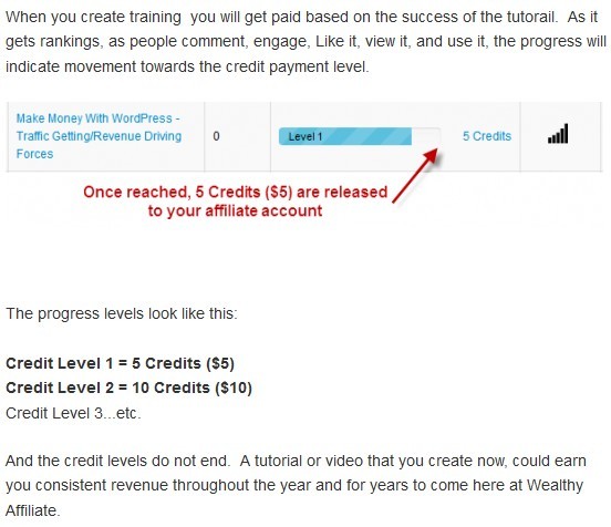 At level one of the training, you'll earn 10 cash credits ($5 revenue) once you've reached level 2, 20 cash credits ($10 revenue) once you've reached level 3 and so on in a lifetime.