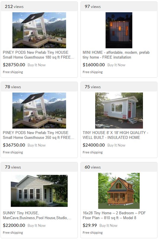 Okay, don't be fooled by the $28,000 houses for sale under the eBay listings with this one. I doubt very many people are ordering tiny houses online. With that said, there is a lot of interest here and the whole tiny house movement is growing.
