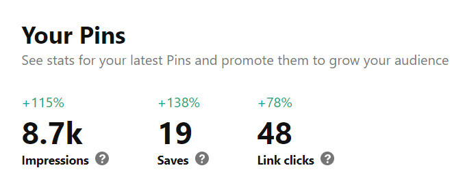 I'm running a very basic Pinterest strategy. So these numbers are a HUGE improvement for my account.