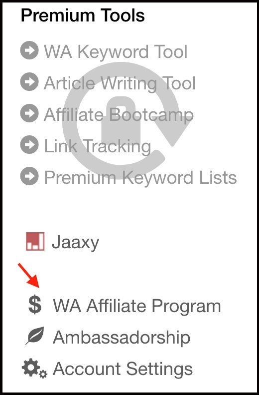 To enter your PayPal email address, simply locate the "WA Affiliate Program" to the bottom left of your screen as pictured below and click on it: