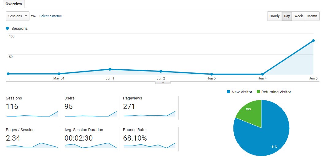 I have actually started seeing much larger amounts of traffic than I've ever seen before! This morning I checked my Google Analytics account, very casually, and was very surprised to see about 80 new visitors coming into my website in just one day!