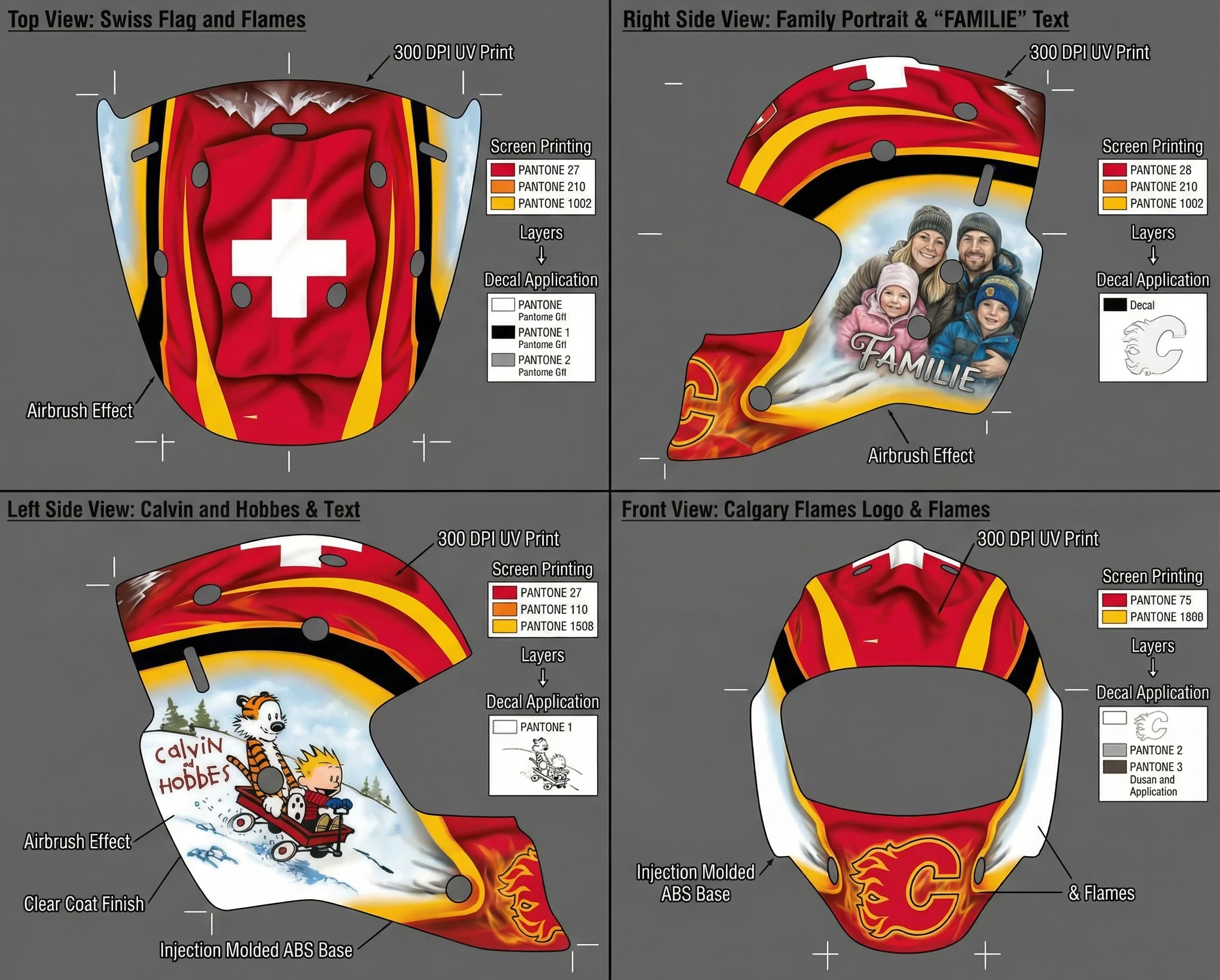 I was playing around with Image Studio and ended up generating a goalie mask concept that looked way better than I expected. And Yes, I chose the Calgary Flames, a team I am not a fan of! What I was after was not just “cool AI art,” but something that looked like it could actually be used by a real goalie mask painter.