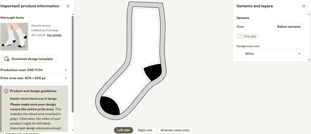 I saved the Flat Right Sock Mockup from Printify (pictured above).