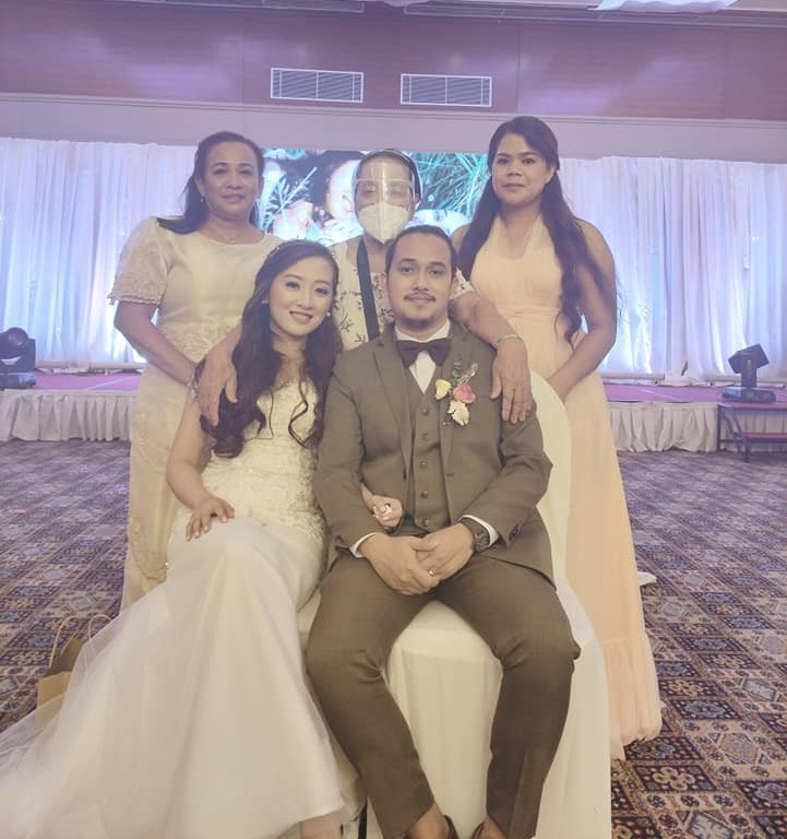 At the same time, we were cautious of ourselves as we have still had a pandemic covid19 problems around. So we advised to wearing a face mask and face shield inside the church and at the wedding reception.