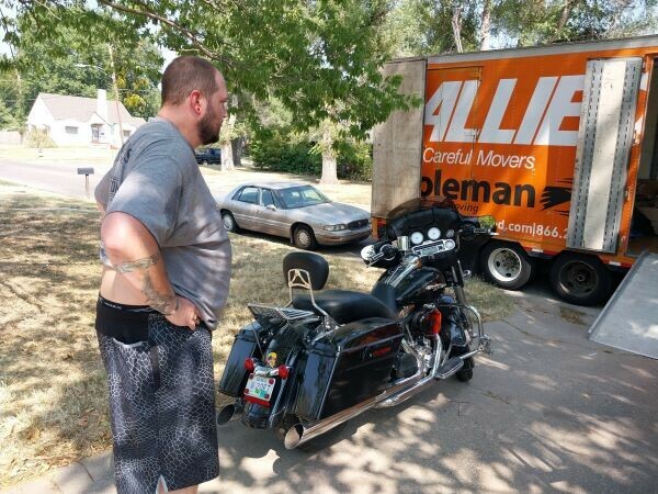 The neighbor has a 2010 HD 1200 Super Glide Touring Bike, so it is no Piglet!