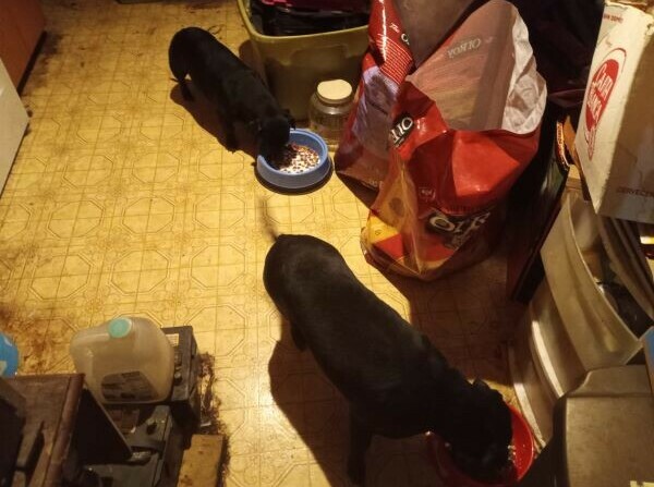 The first thing that I did when I arrived there was to go inside, let the Blog Dogs outside, and then feed them their main meal of the day.