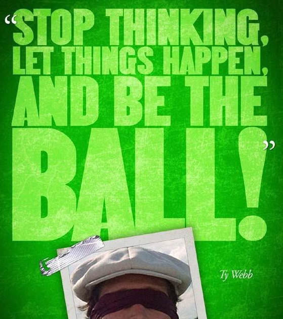 This mantra is loosely based on Chevy Chase's character, Ty Webb's "Be the Ball" skit in the 1980 Movie Caddyshack.