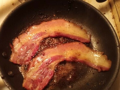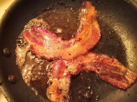 Then, I decided that I was hungry, so I prepared some bacon for a sandwich.