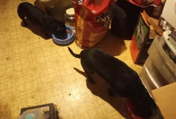 The sandwich was very good, indeed! When the Blog Dogs came back inside, I decided to give them some food with some drippings from the bacon!