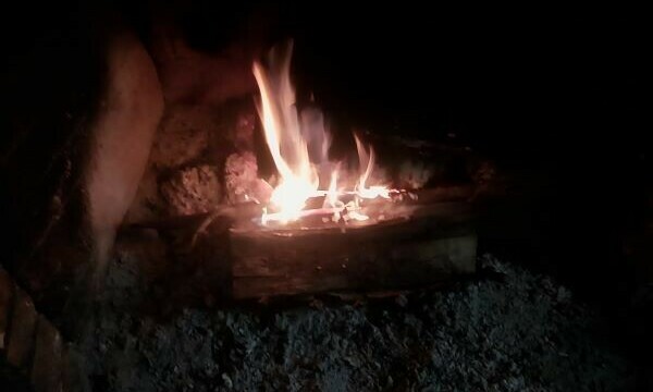 After I signed off last night, I worked on getting another fire going with dwindling firewood to maintain heat in the eBay house overnight. It worked surprisingly well.