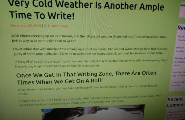 Then I went back inside to finish a post that I had started on my book promotion website last night.