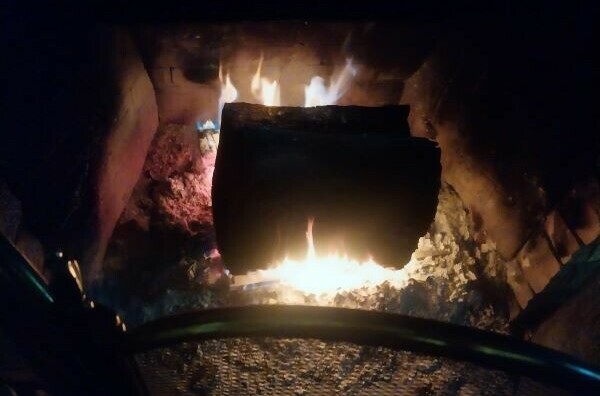 The new fire I set this morning has a hardwood log in it, so that will take longer to burn. It was also very heavy for me to bring in too.