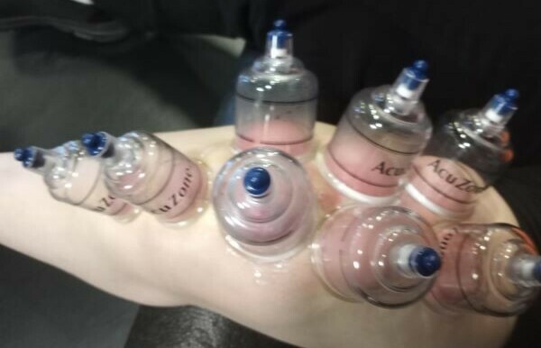 She also had some more cupping done to further stretch the scar tissue.