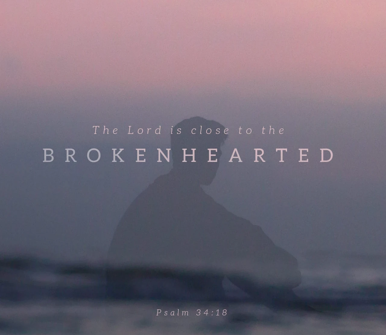 Psalm 34:18, "The Lord is near to the brokenhearted and saves those crushed in spirit,"