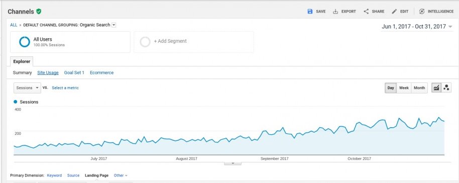 Since then you can see my traffic rising a little faster since the end of August: