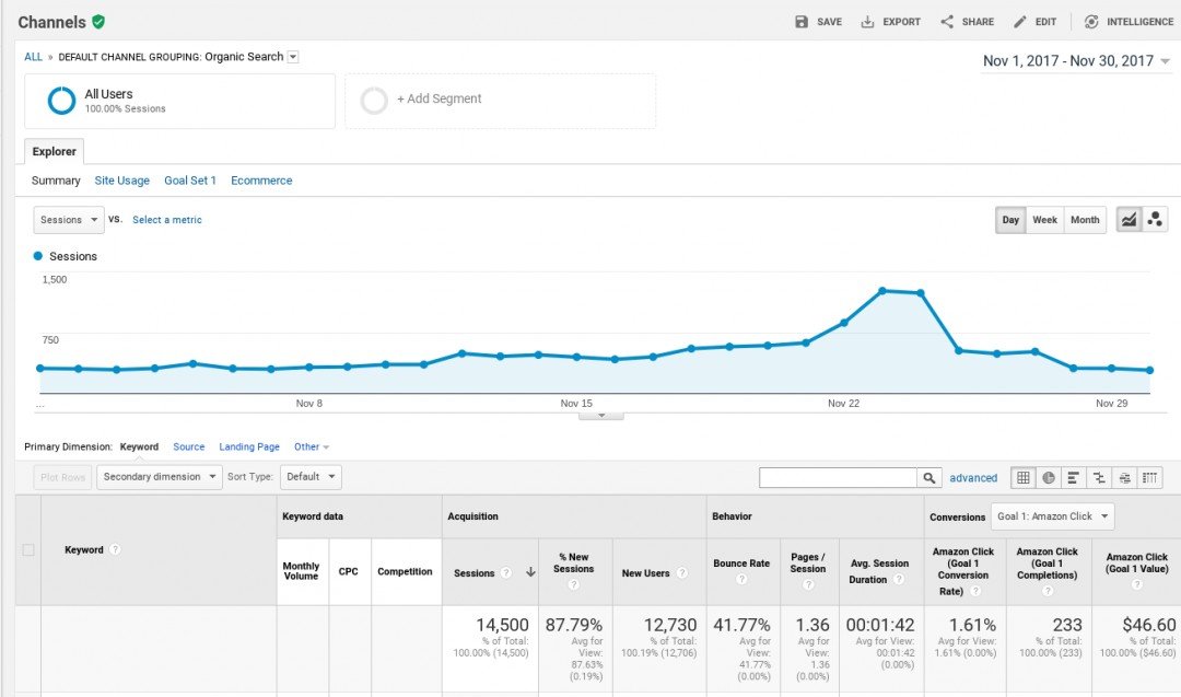 As you can see it was responsible for over 30% of my traffic in November: