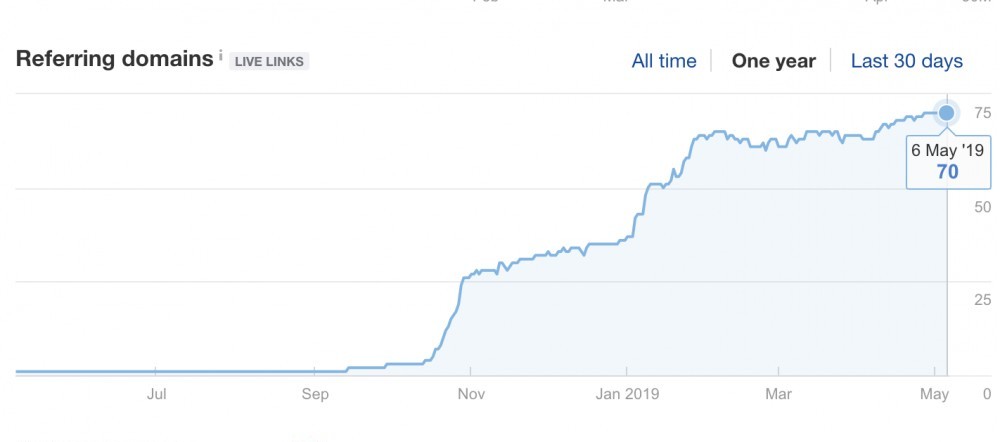 Here is a screenshot from Ahrefs showing the link velocity. Full disclosure, I am using software to create the ability to do this with minimal time commitment.
