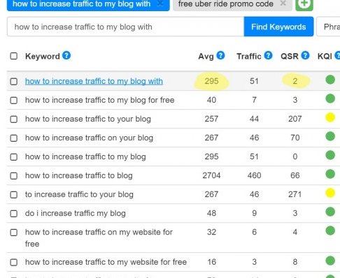 As the picture shows, an average of 295 people per month search for "how to increase traffic to my blog with" and only 2 results come up in google with those exact words in that exact order.