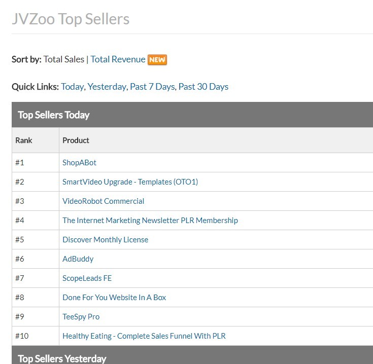 One more benefit of these platforms is that there's usually a "List of Top Selling Products" for the day, for the week or for the month. These are great opportunities for you to look into as well.