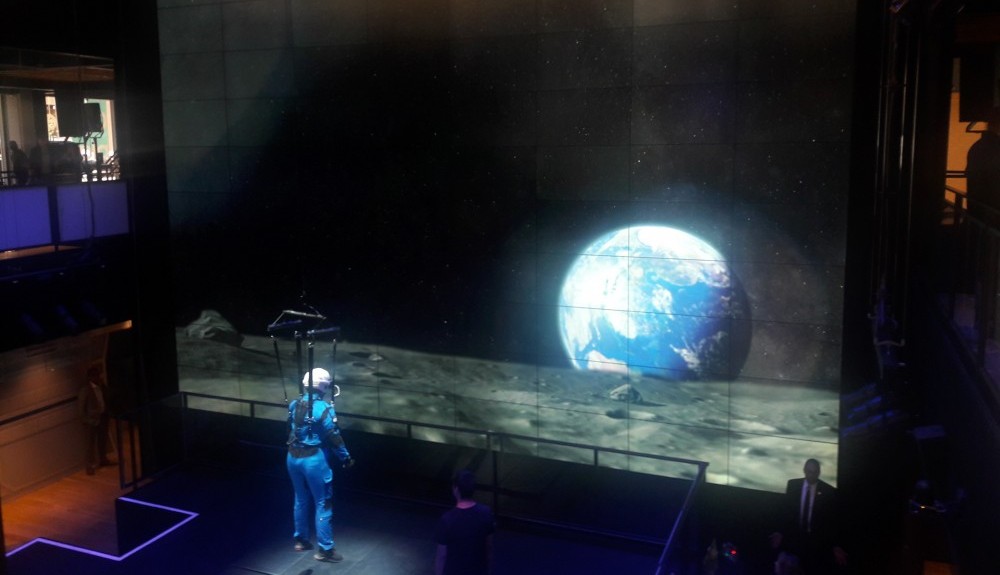 Second, the jumpsuit harness was too tight. The operators strapped me in so tight to the point it may have been cutting off some of my oxygen, or at least prohibiting my comfort. However, before beginning the moonwalk and going virtual, this issue was corrected as the straps were slightly loosened.