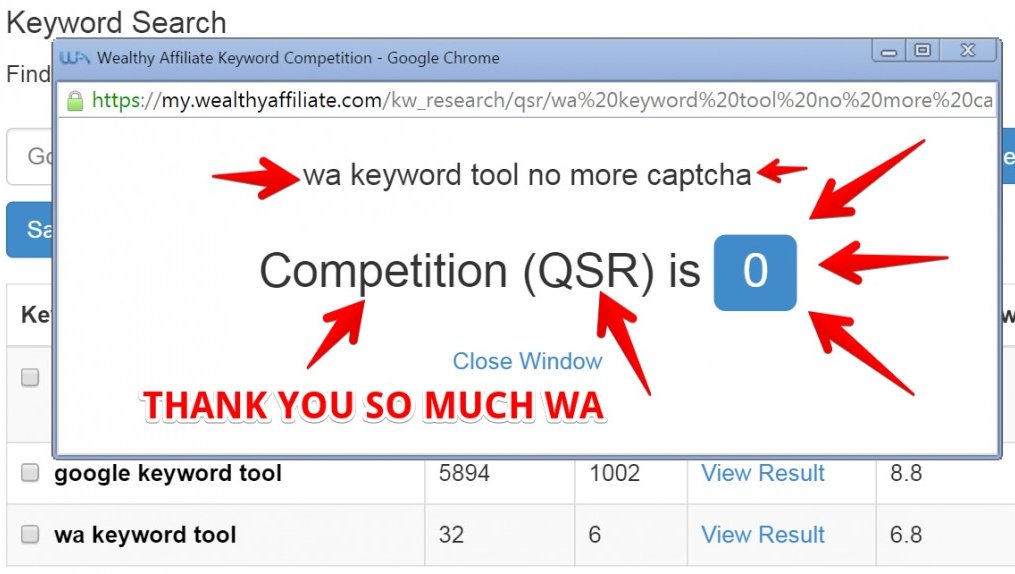 What I mean is I'm not getting the captcha code anymore and don't have to write weird words time and time again. It was the most annoying thing, I gave up and hardly ever used it. I even wrote a blog about it. https://my.wealthyaffiliate.com/jim-wmp/blog/wa-ke...