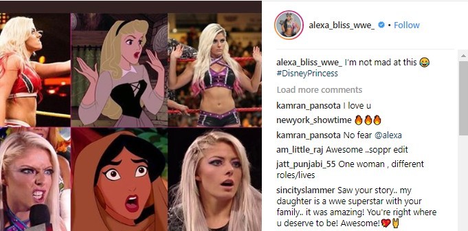 Former WWE Raw Women's Champion Alexa Bliss is popular on social media, and one fan noticed that she often looks like some other famous women, namely Disney Princesses.