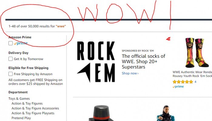 Search for WWE on Amazon and you see it has over 50,000 results for things that people can buy.
