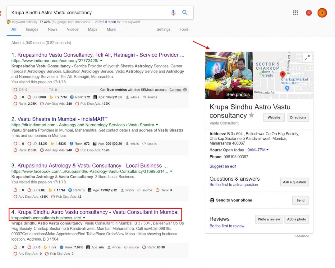 All these things are done just on trial basis, but the result after 5 hours, the listing appear on first page of Google on 4th position with knowledge graph!