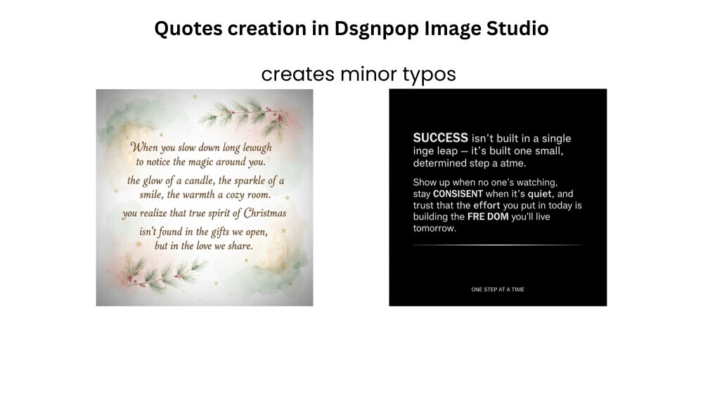 I also tested how it handled text-heavy visuals, specifically motivational quotes. when working with lengthy quotes, Image Studio occasionally creates minor typos or punctuation inconsistencies.