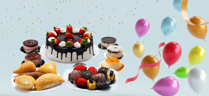 Here is cake with balloons to celebrate with you.